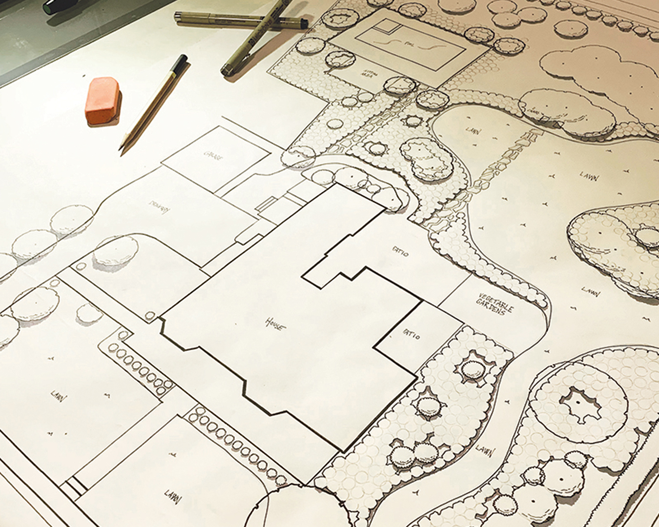 After discussing the three concept designs and understanding more about the needs of our client, it is time to get more detailed. Armed with more information, we are able to take the designs further and develop deeper into the landscape.